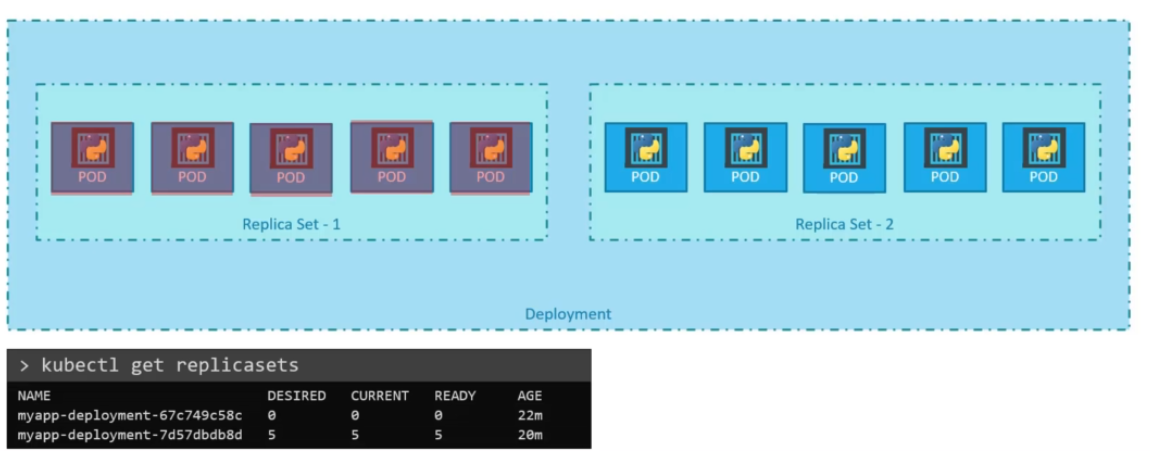 Updates and rollbacks are best handled through deployments. Deployments allow us to perform updates and rollbacks without any downtime.