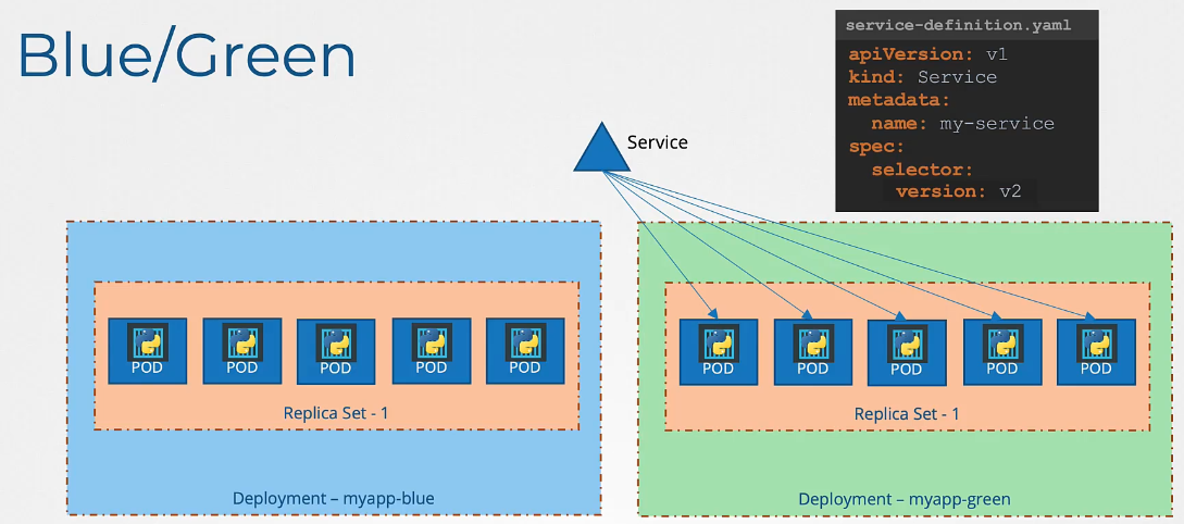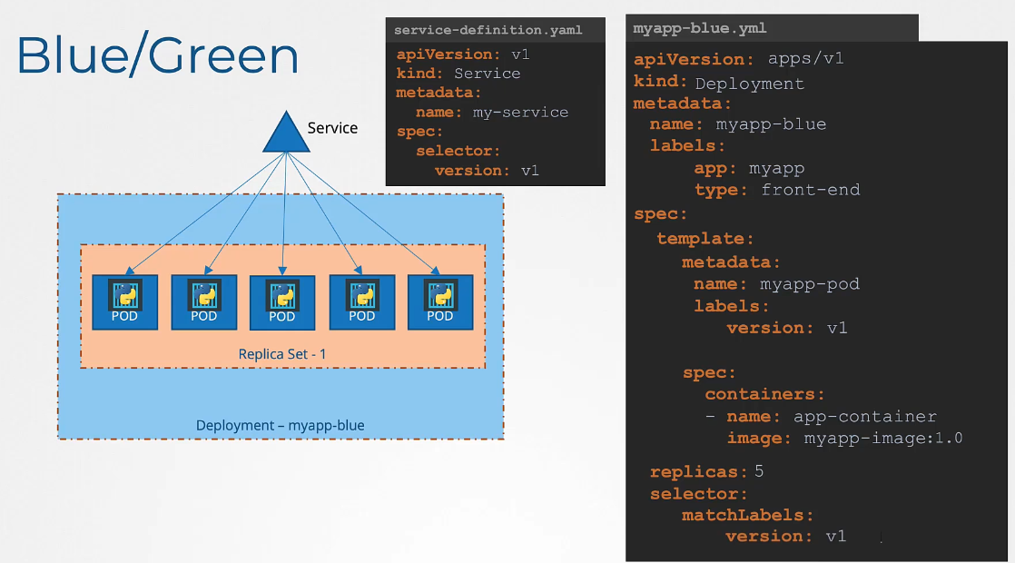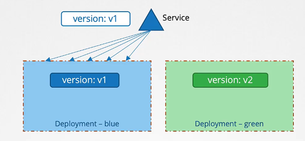 - The blue Deployment is the current application