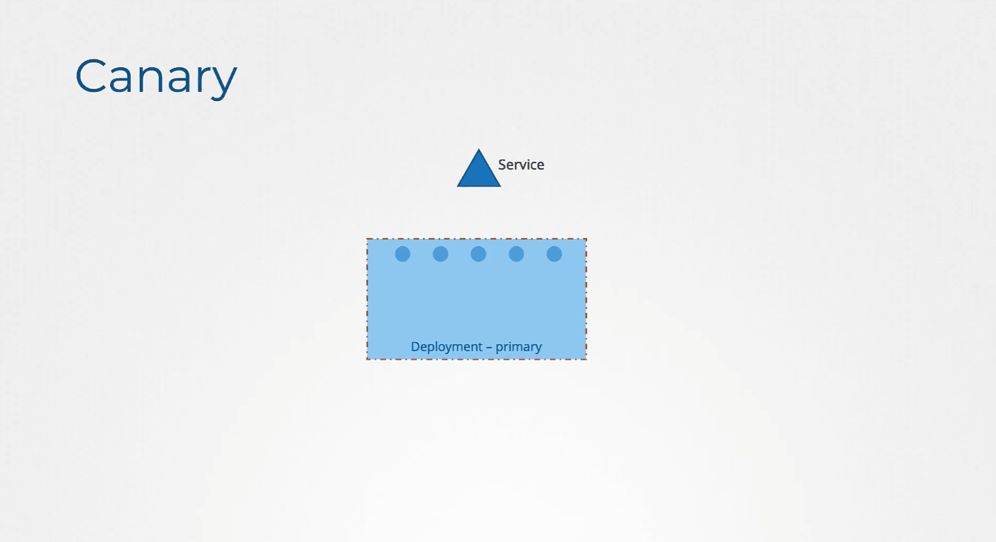 A canary Deployment is an update strategy where you first push the update at small scale to see if it works well. In terms of Kubernetes, you could imagine a Deployment that runs 4 replicas. Next, you add a new Deployment that uses the same label. Then you create a Service that uses the same selector label for all. As the Service is load balancing, only 1 out of 5 requests would be serviced by the newer version. if that doesn’t seem to be working, you can easily delete it.