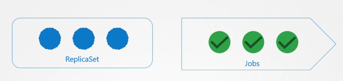 A ReplicaSet ensures that a specified number of pods are always running, while a Job is used to run a set of pods that perform a task until completion.