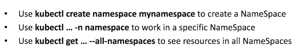 name: dev$ kubectl create -f namespace-dev.yamlAnother way to create a namespace: