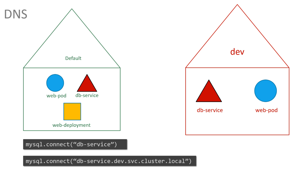 Within a namespace, resources can refer to each other by their simple names. For instance, the web app Pod can reach the DB service using just the hostname DB service.