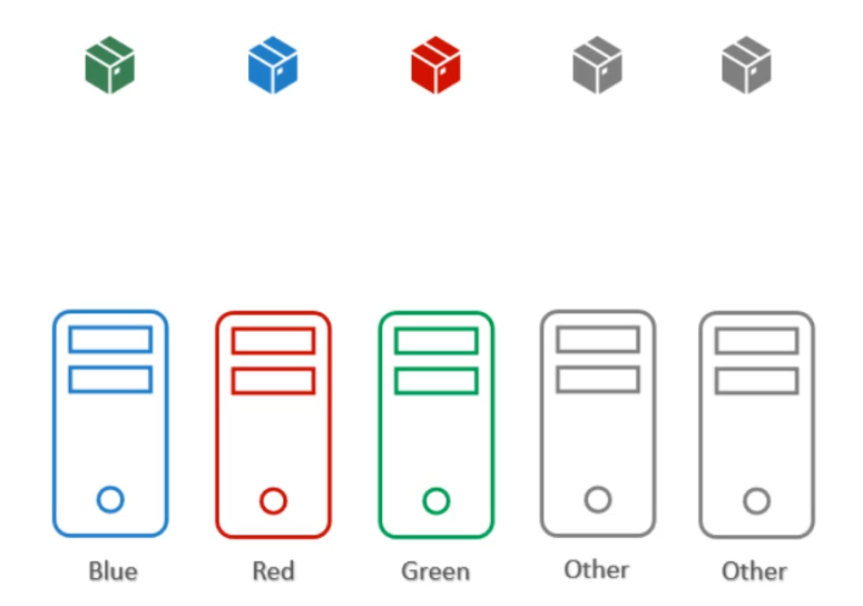 - The remaining 2 Pods should be scheduled onto any of the other nodes that do not have colour-specific requirements.